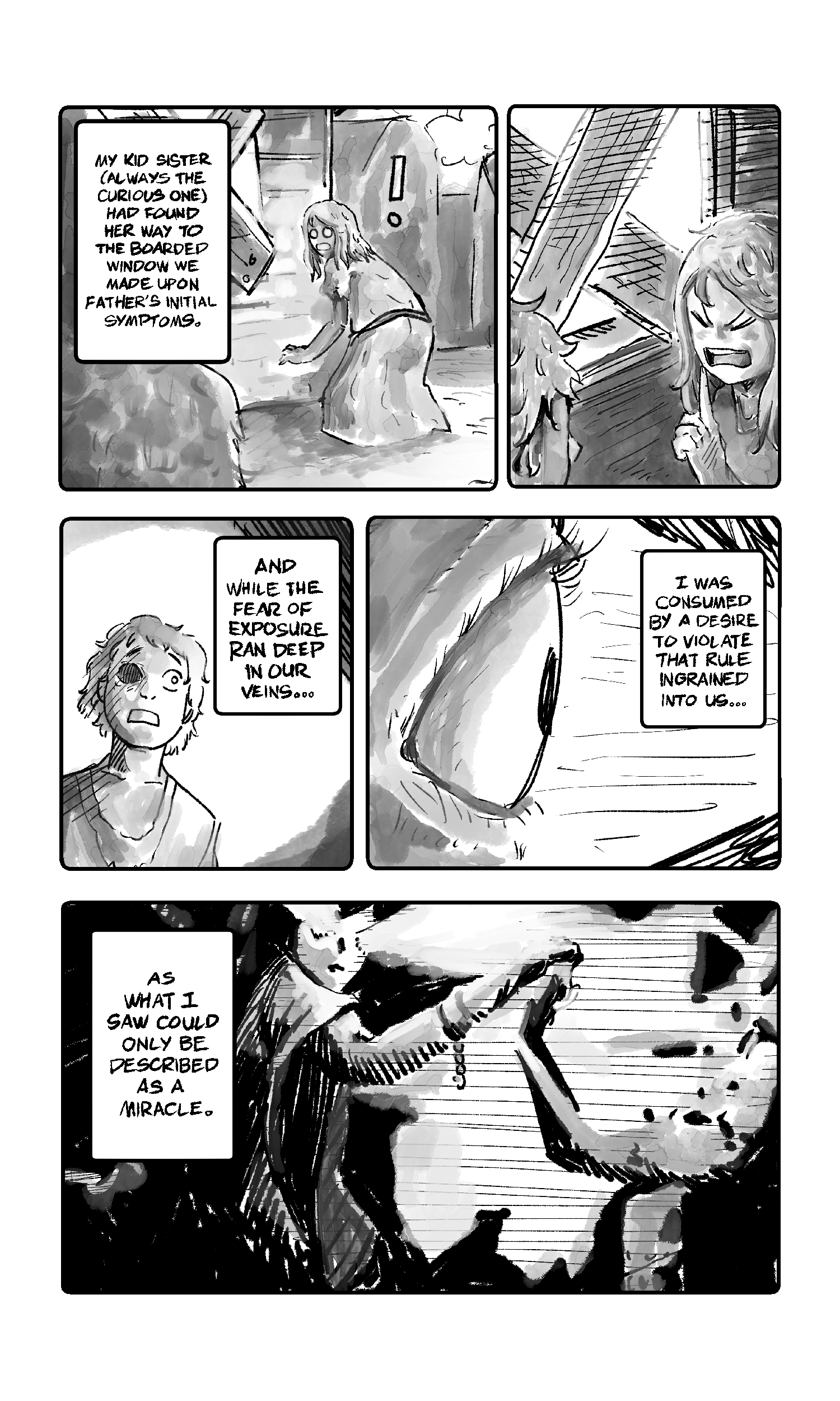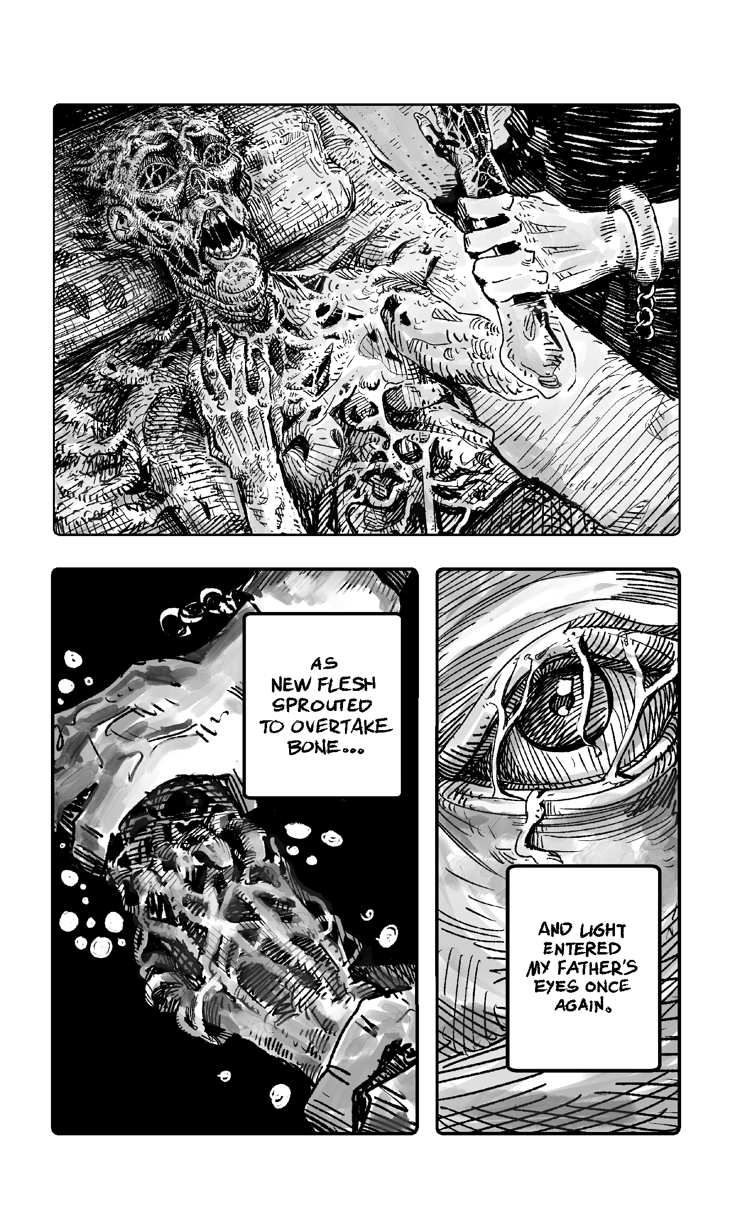 Enrique Beltran (aka SPUNIN) is an illustrator from the Philippines with a love for weird speculative fiction stories and narrative puzzles. His work involves the melding of fairy tales and ghost stories he heard as a kid with the real life consequences those stories may actually entail. This story, “Familiar Flesh”, was made for those who think only grace, and not recklessness, is needed to perform miracles.